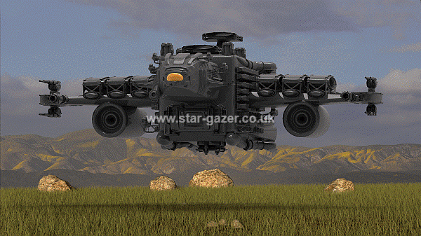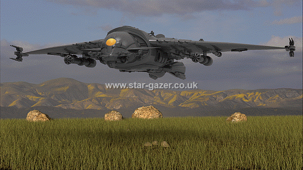 | The spacecraft Taris crash landed on the Island, and identical to the ships of Oma and Obsidian. This ugly duckling is a work-horse that is functional, like a six-wheel tipper truck.