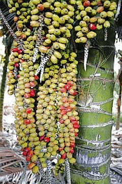 The type is not specified, but Jack thinks they may be date palm fruits. The image above is of Lord Howe Island Kentish Palm fruit, which are similar in appearance to what was found on the imaginary Outland interior.