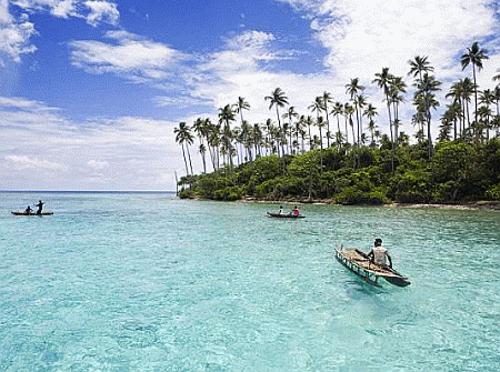 | The nearest islands to the imaginary Island of the book are mainly atolls, although some are larger and support trading populations.
